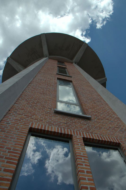 Ezt a II. világháború idején épült víztornyot olyan ügyesen alakították át családi házzá, hogy semmilyen funkció nem sérült benne. Eredeti rendeltetése szerint a ’90-es évekig használatban volt. A felújítás során az autentikus külsőt és egyes belső szerkezeti elemeket, például a beton plafont és lépcsőt, teljesen megtartották, sőt az óriási (250 ezer literes!) víztartályt is.