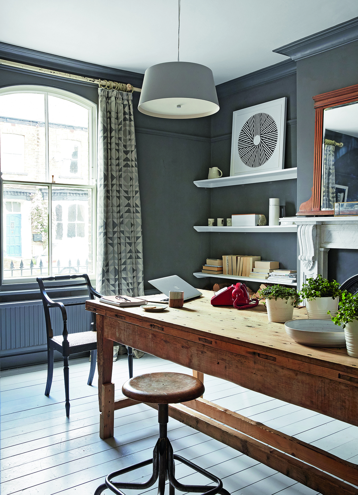 Az öreg malomból kialakított lakóház különleges atmoszféráját a régi tárgyak és bútorok valamint a puha kék és szürke árnyalatok együtt alkotják. Átalakítása során a tulajdonosok eldöntötték, hogy ha már amúgy is sötét a ház, akkor inkább ráerősítenek erre a sötét színek használatával, és meghitt, lakályos hangulatot kreálnak. A különféle árnyalatú fa bútorokkal, a falak rusztikus felületű, szinte három dimenziós kialakításával, a kortárs dekorációval, a modern világítással, a festett régi kandallókkal, a hosszú szőrű egyszerű szőnyegekkel, néhány szép formájú, ’60-as évekből származó bútorral igazán jóféle dinamikát teremtettek a kontrasztosságra építve.
